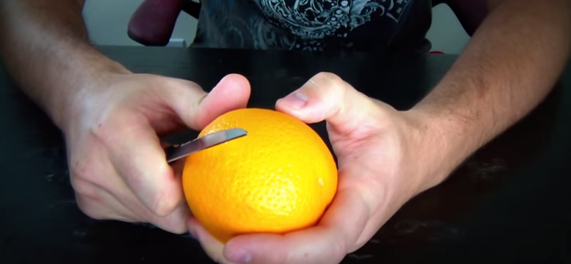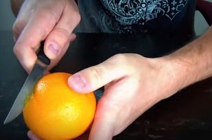 Hãy cắt đúng một đường vòng quanh quả cam, ngay chính giữa, đương nhiên